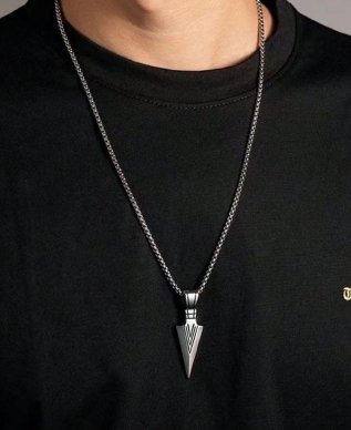 A sturdy silver chain necklace with a sharp arrowhead pendant, exuding a rugged yet elegant vibe