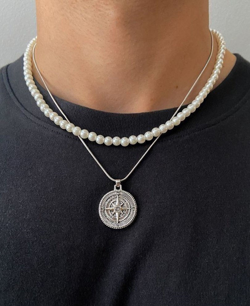 Stay on course with this dual-layer necklace featuring a sleek compass pendant. A minimalist yet meaningful piece for the modern man with a sense of direction.