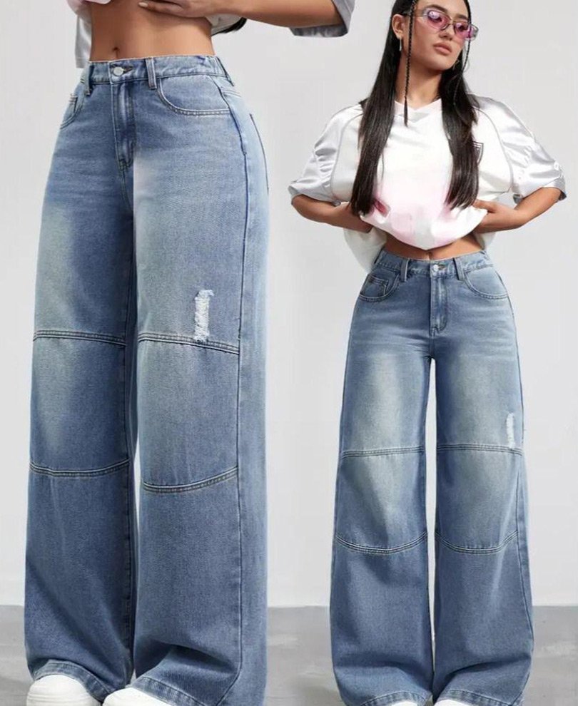 Distressed Wide-Leg Denim Jeans