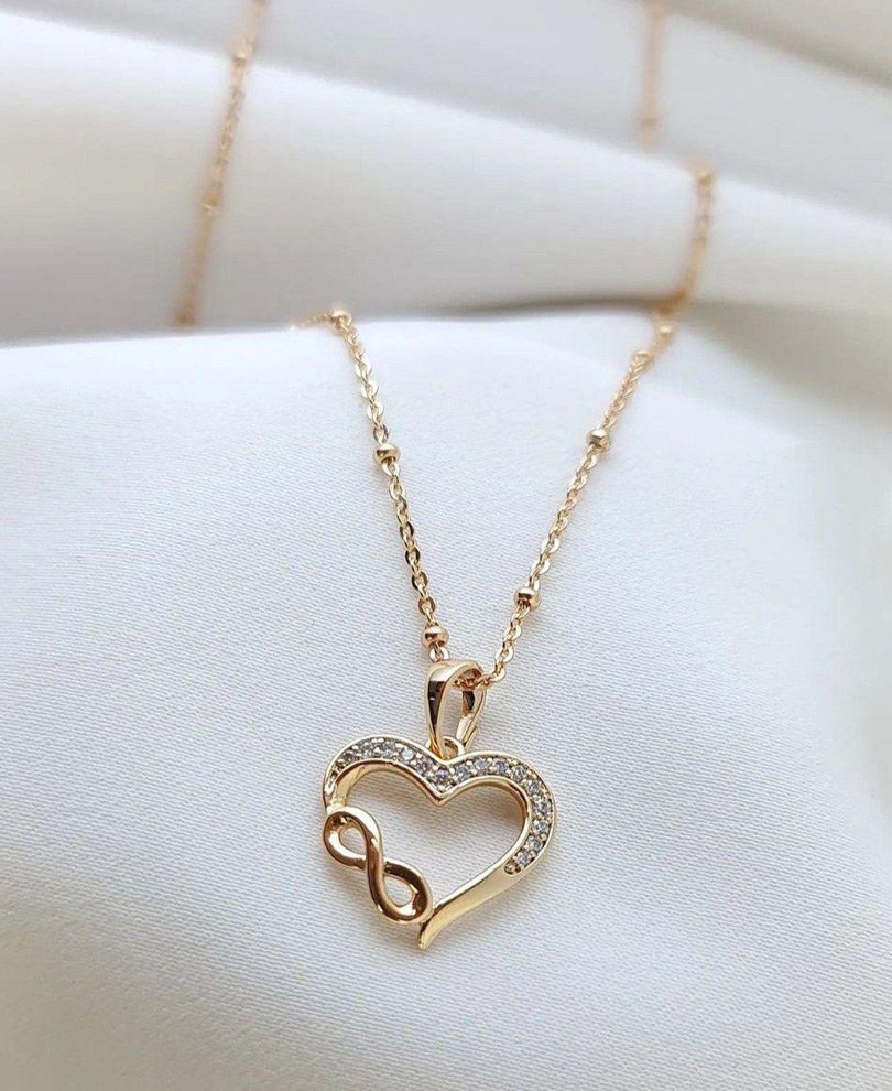 This charming pendant blends the timeless heart symbol with an infinity loop, both accented with delicate stones. A representation of everlasting love and connection, it makes a perfect gift for someone special.