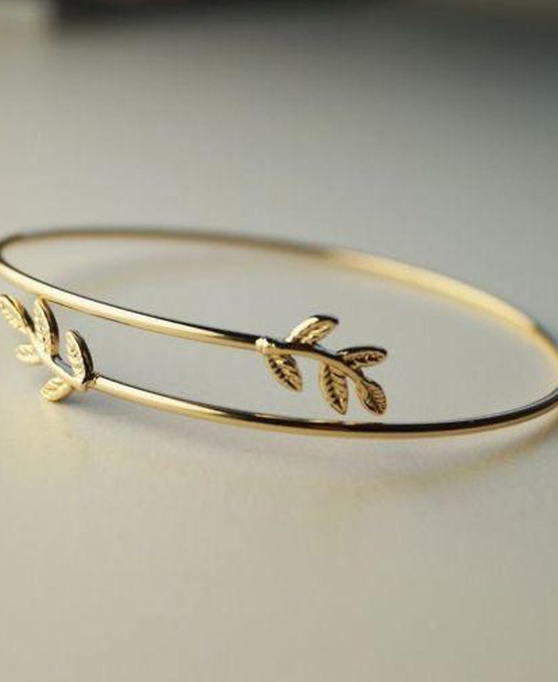Inspired by nature, this gold bangle showcases a delicate branch motif with intricately detailed leaves. A graceful accessory that brings organic charm and elegance to your wrist.