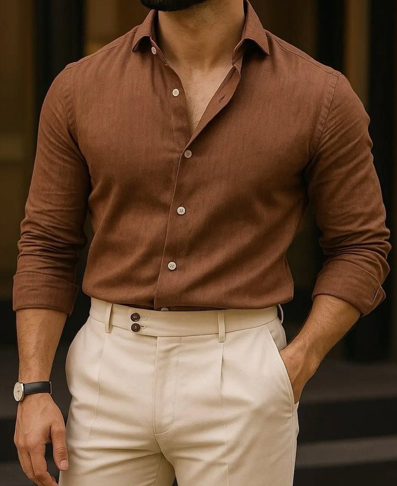 Classic men's brown shirt, crafted for versatile style and comfort. Perfect for casual or semi-formal looks, made with premium, breathable fabric
