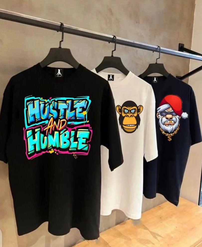 Black five and white sleeve T-shirt for men Typography solid Regular length Round neck