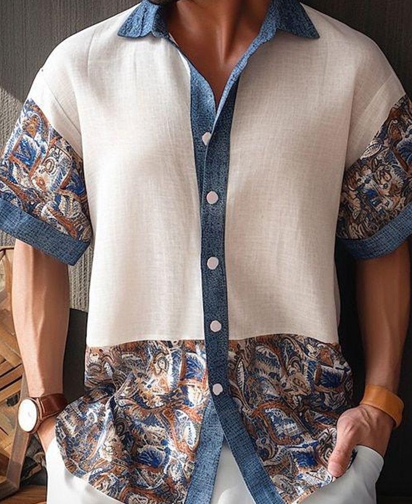 Men’s white short-sleeve shirt, perfect for warm days and casual outings.